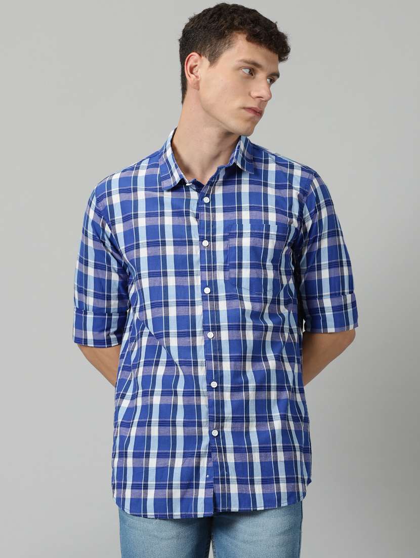 - » blue checkered long sleeves casual shirt