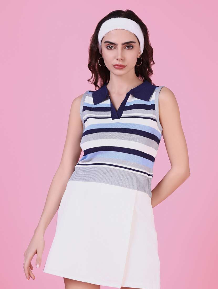 - Opt for this top made up of acrylic material and get it in a varied neck design.