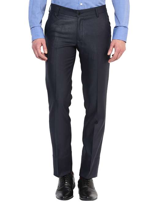 Complete your corporate look for the day with these formal trousers from BUKKL clothing .Best worn with a smart formal shirt, these slim-fit trousers offer sheer comfort too, courtesy the viscose blend fabric.