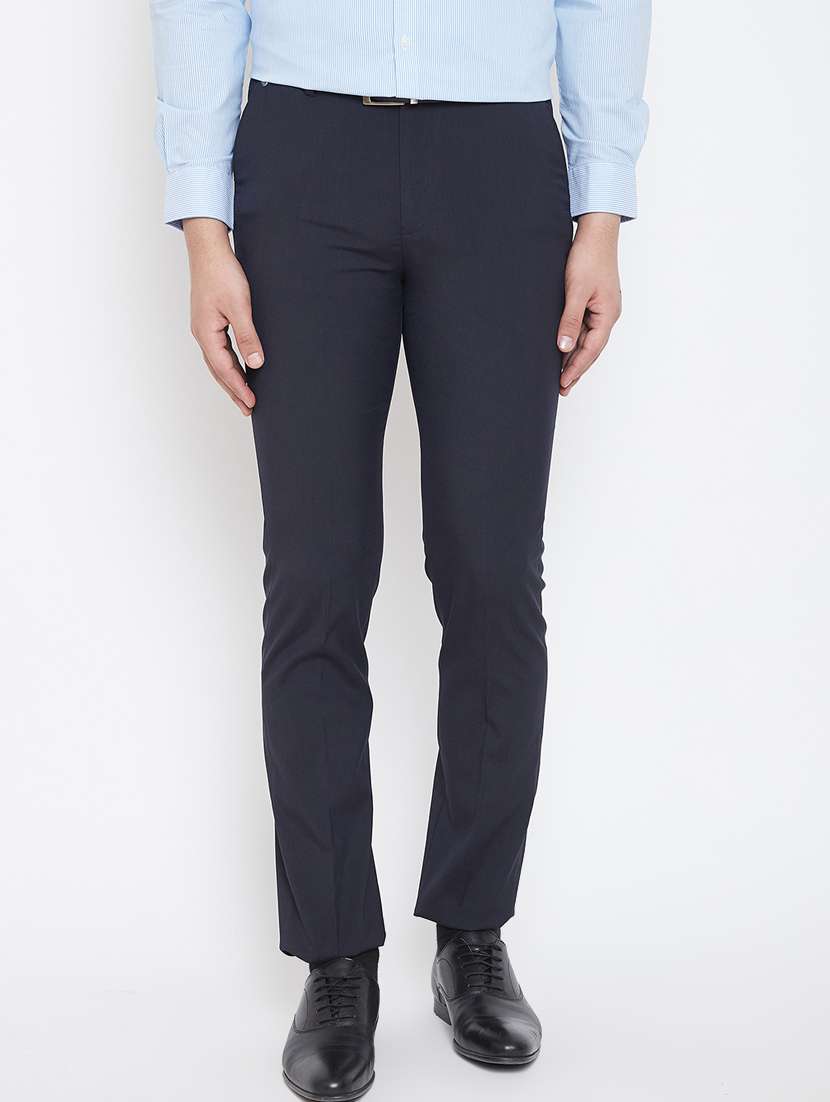 - » navy blue solid flat front formal trouser