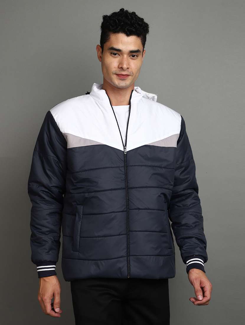 navy blue color block quilted jacket
