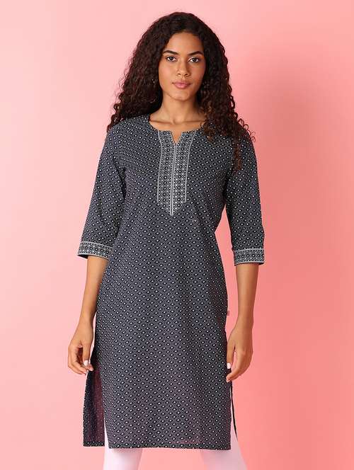 - Grab this beautiful kurta made up of cotton fabric featuring round neck designs.