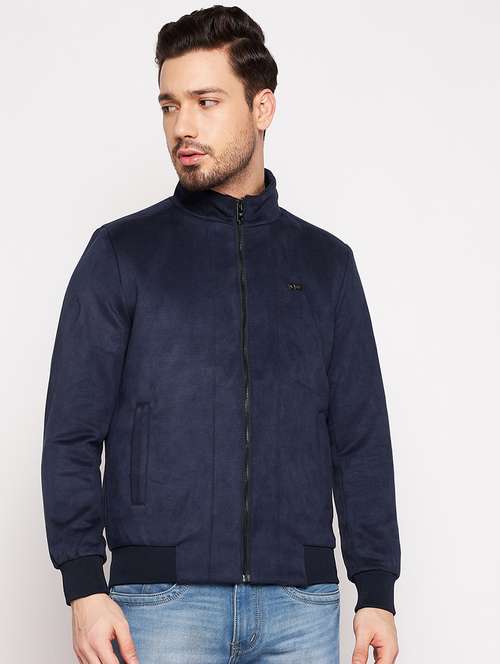 - » navy blue solid bomber jacket