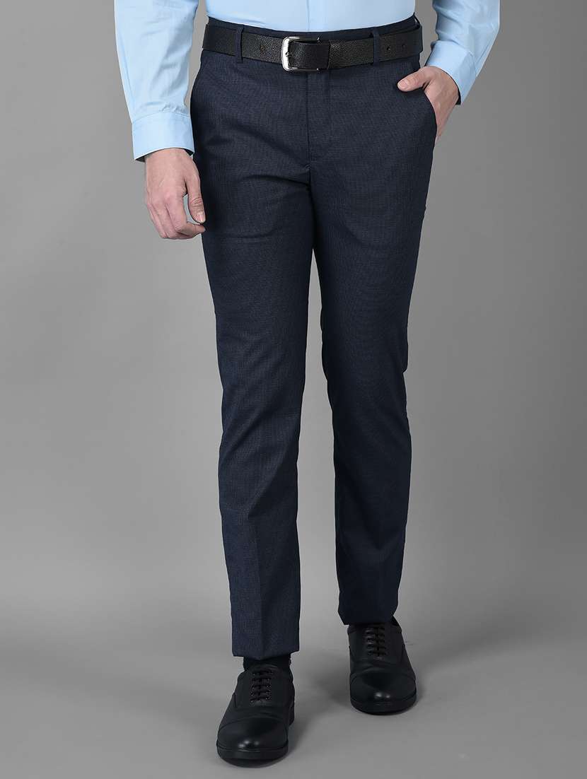 Canary London Navy Self Design Slim Fit Formal Trouser