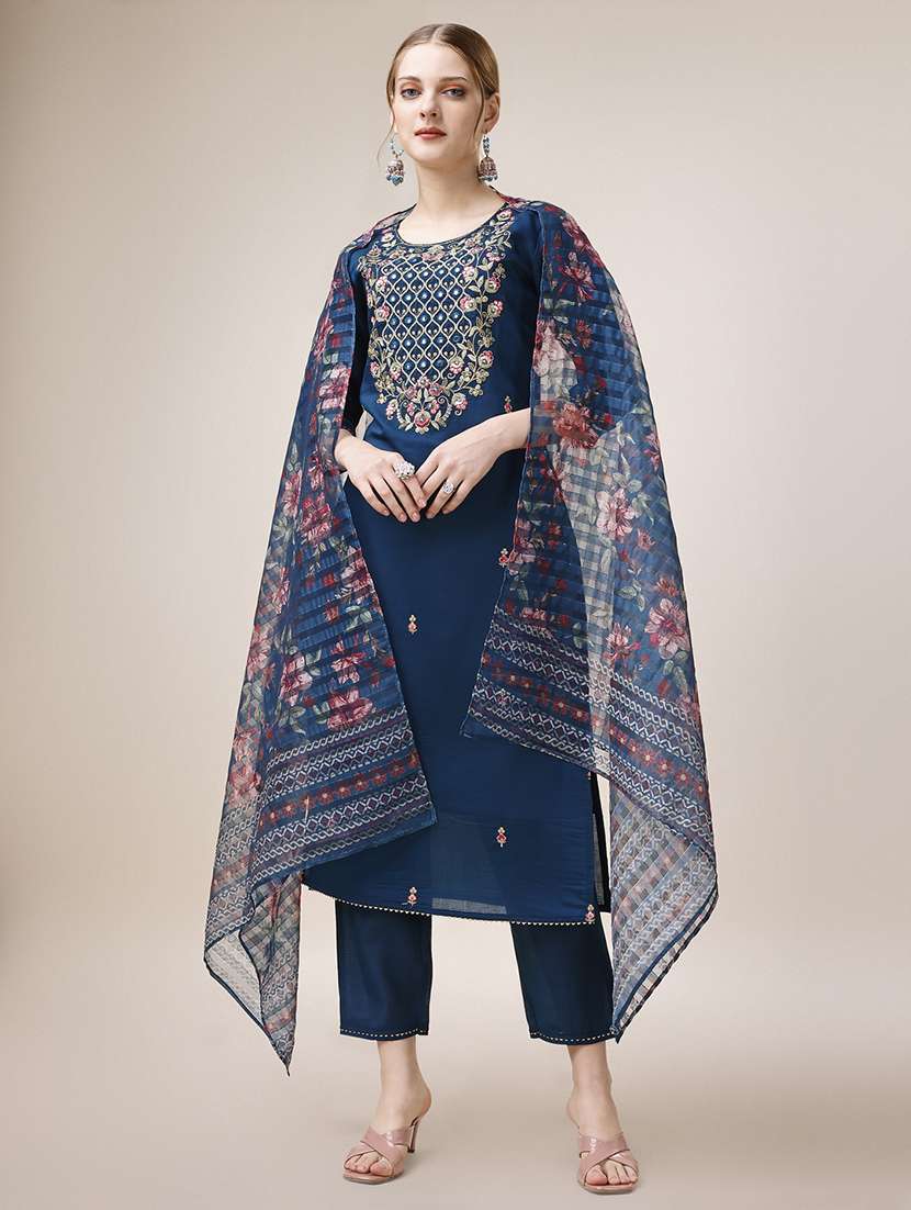 women navy blue kurta dupatta set - 21308907 - Very Small Image - 1