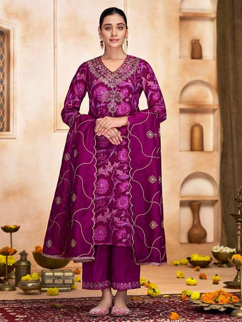 - Browse through the latest range of ethnic sets for women with tailored sleeve designs with embellished works.