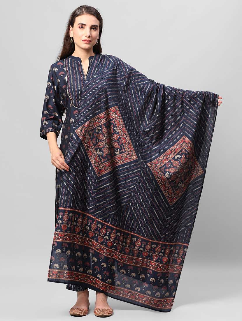 - Find gorgeous sets of ethnic wears in trending designs in navy blue colors suitable for festive wear of occasions.