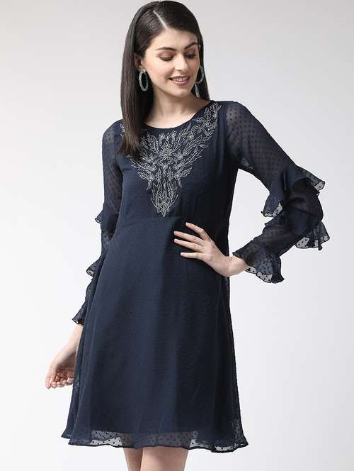 - » embroidered detail dobby a-line dress