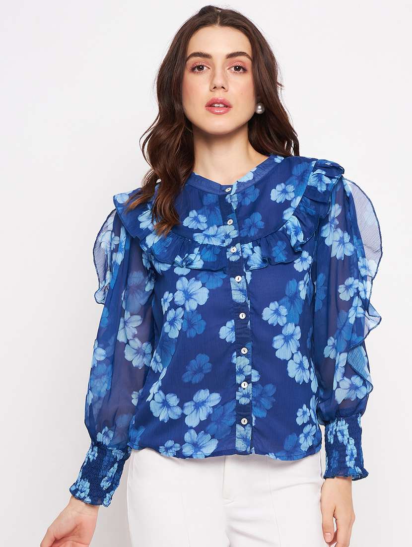 - Opt for this top made up of chiffon material and get it in a mandarin neck design.