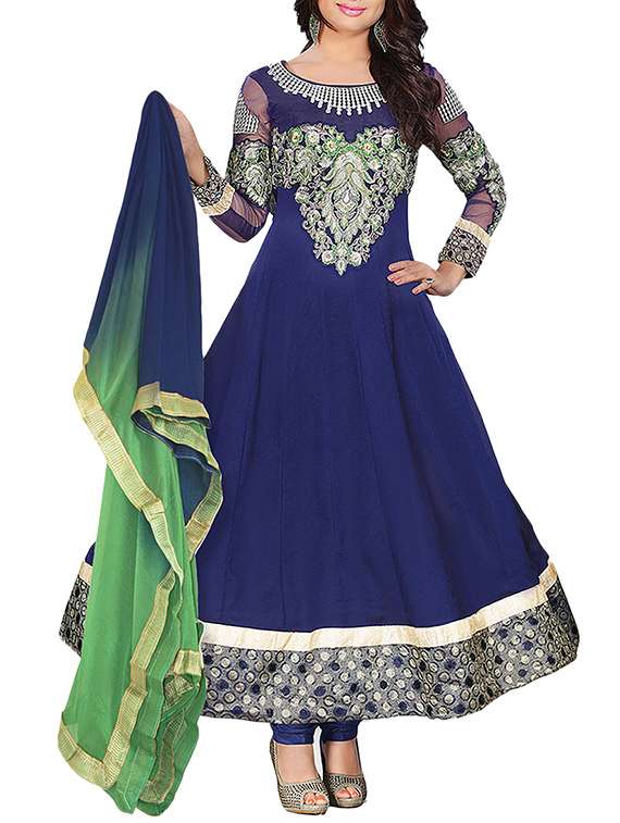 - » navy blue bemberg georgette anarkali semi stitched suit
