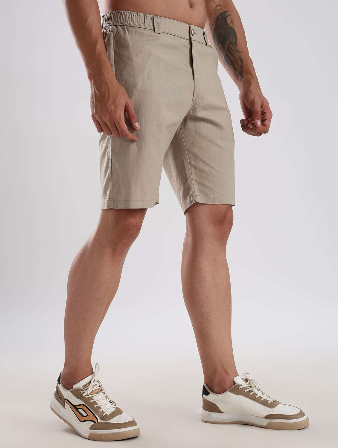 men solid mid rise regular fit shorts