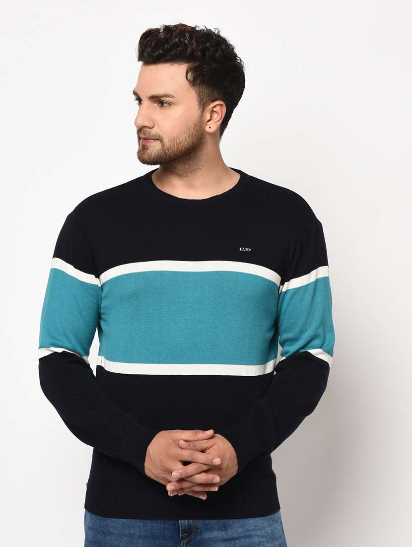 navy blue color block pullover