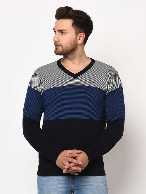 - » navy blue color block pullover