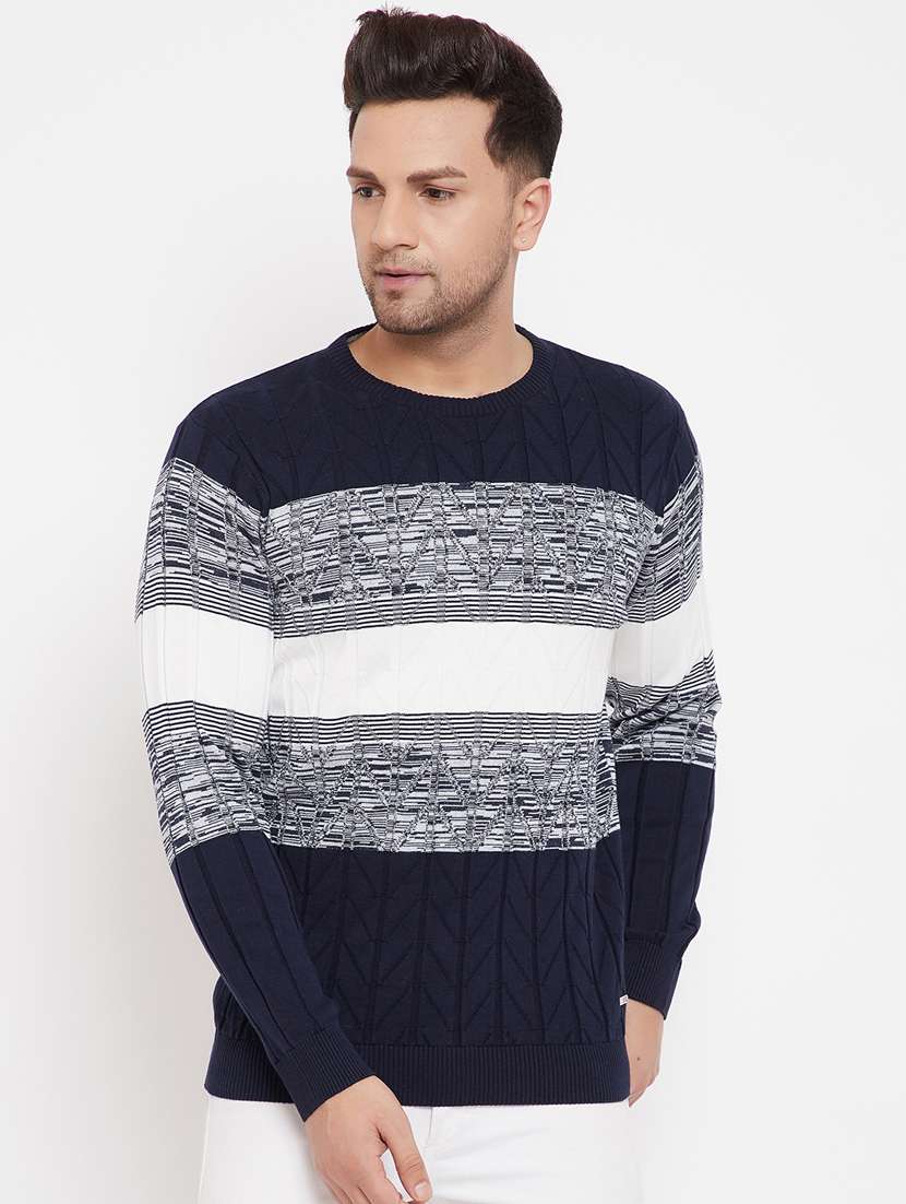 navy blue color block pullover