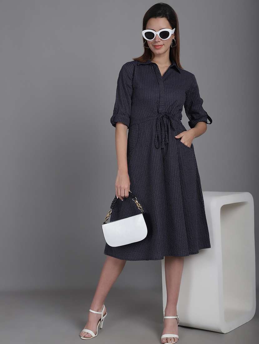 - Looking for some awesome collection of dresses? Well, lay your hands on this dress from Aarsha and also get the option of choosing from navy blue colour.
