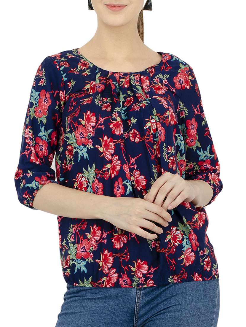 pleated floral blouson top - 15450067 - Very Small Image - 1