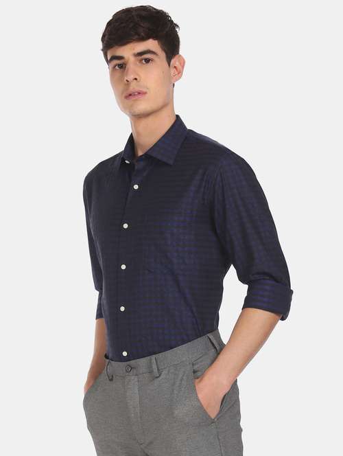 navy blue checkered formal shirt