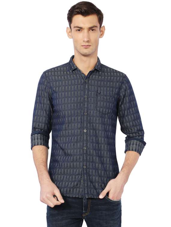 navy blue cotton casual shirt