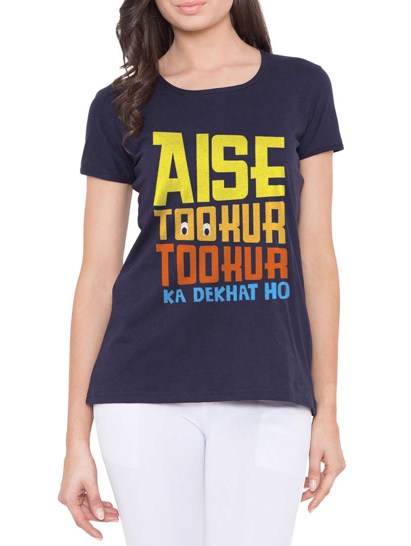 - » navy blue printed cotton tee