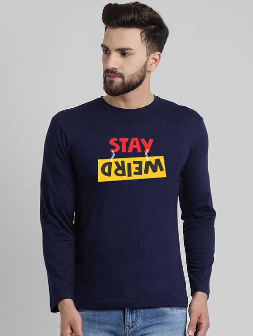 - » navy blue typographic chest print t-shirt