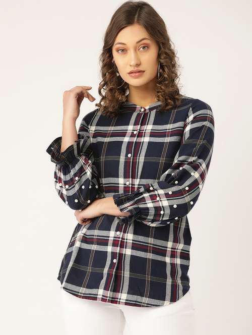 - » curved hem checkered shirt