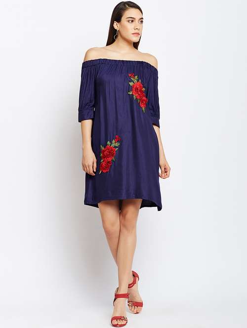 - » navy blue embroidered off shoulder dress