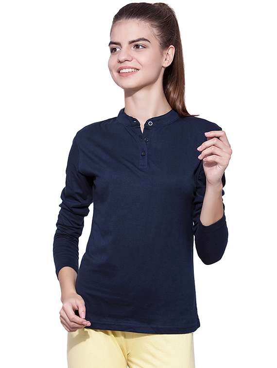 women's plain mandarin neck t-shirt