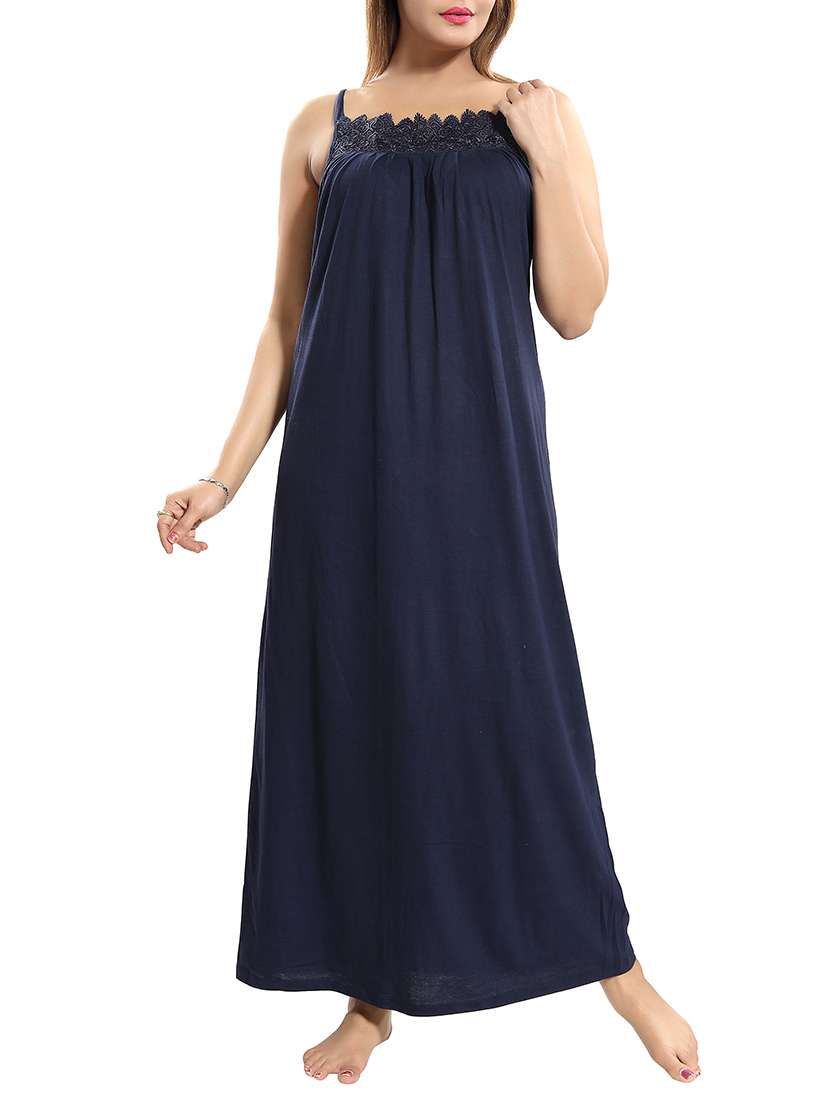Relax yourself in the comfortable nightwears from Be You. This Cotton night dress, has lace on neck, elastic details at the back for perfect fit & strappy sleeves. br Length:Full (Approx 55 Inches) br Size: Free (comfort fit to bust 32-36 inches)