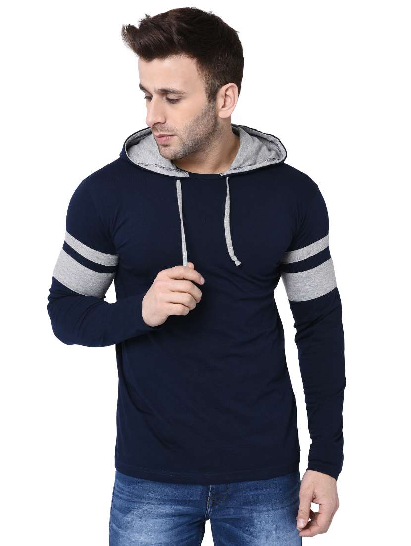 - » navy blue taped hooded t-shirt