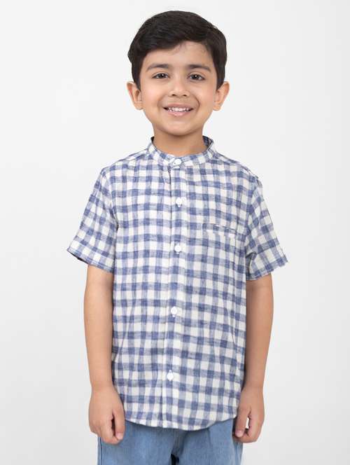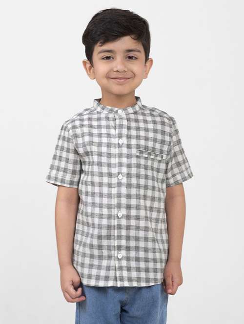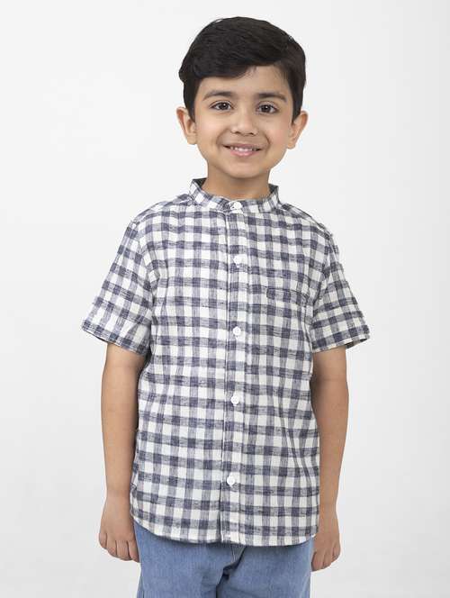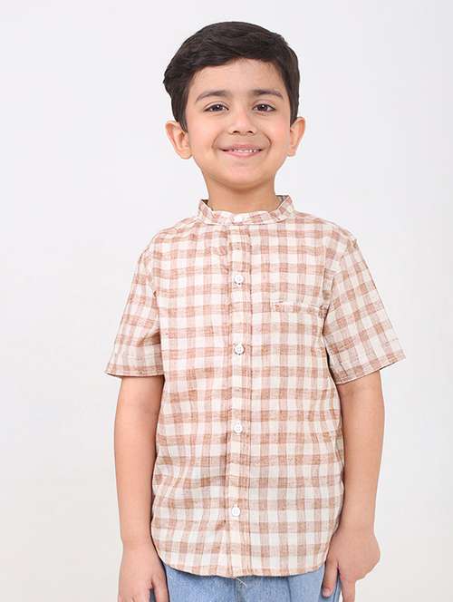 - » boys checkered mandarin neck short sleeves shirt