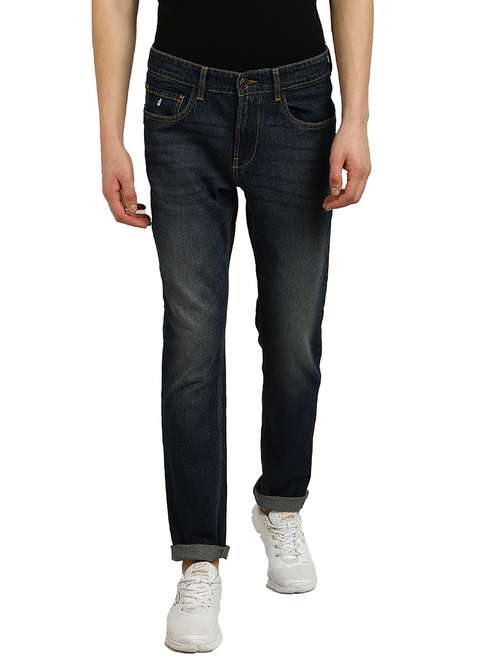 navy blue light washed denim jean