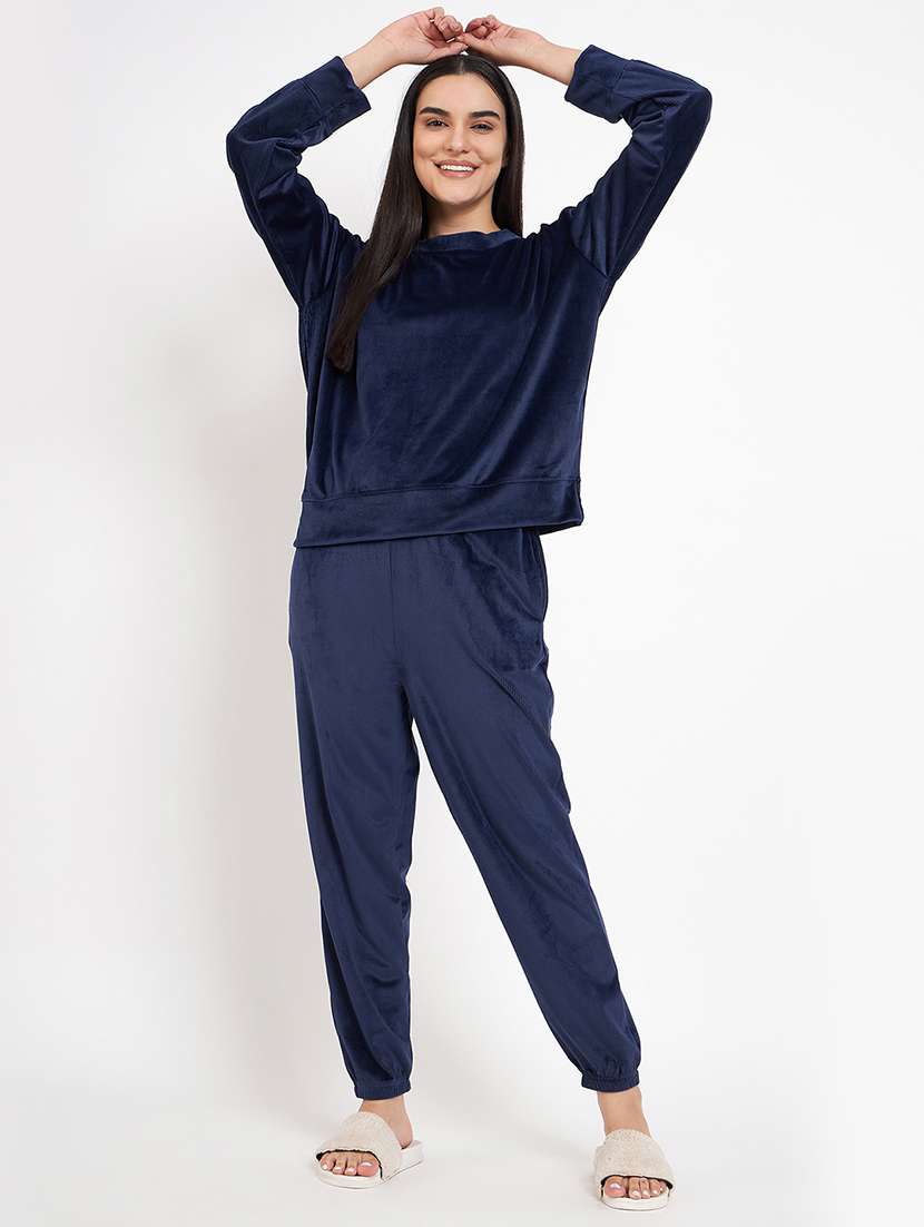 - » women long sleeved solid nightwear pyjama set