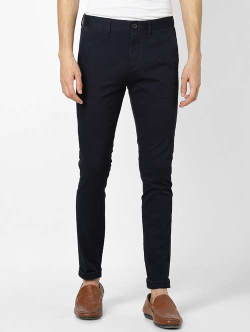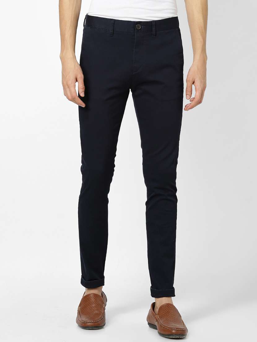navy blue solid chinos