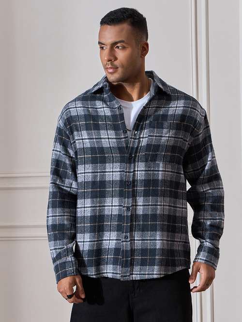- » men checkered oversized casual shirt