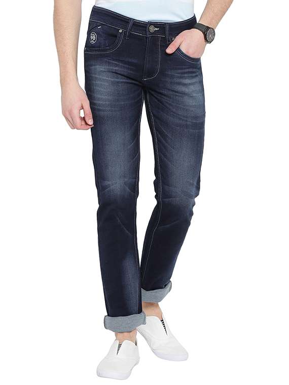 - » navy blue cotton blend jeans