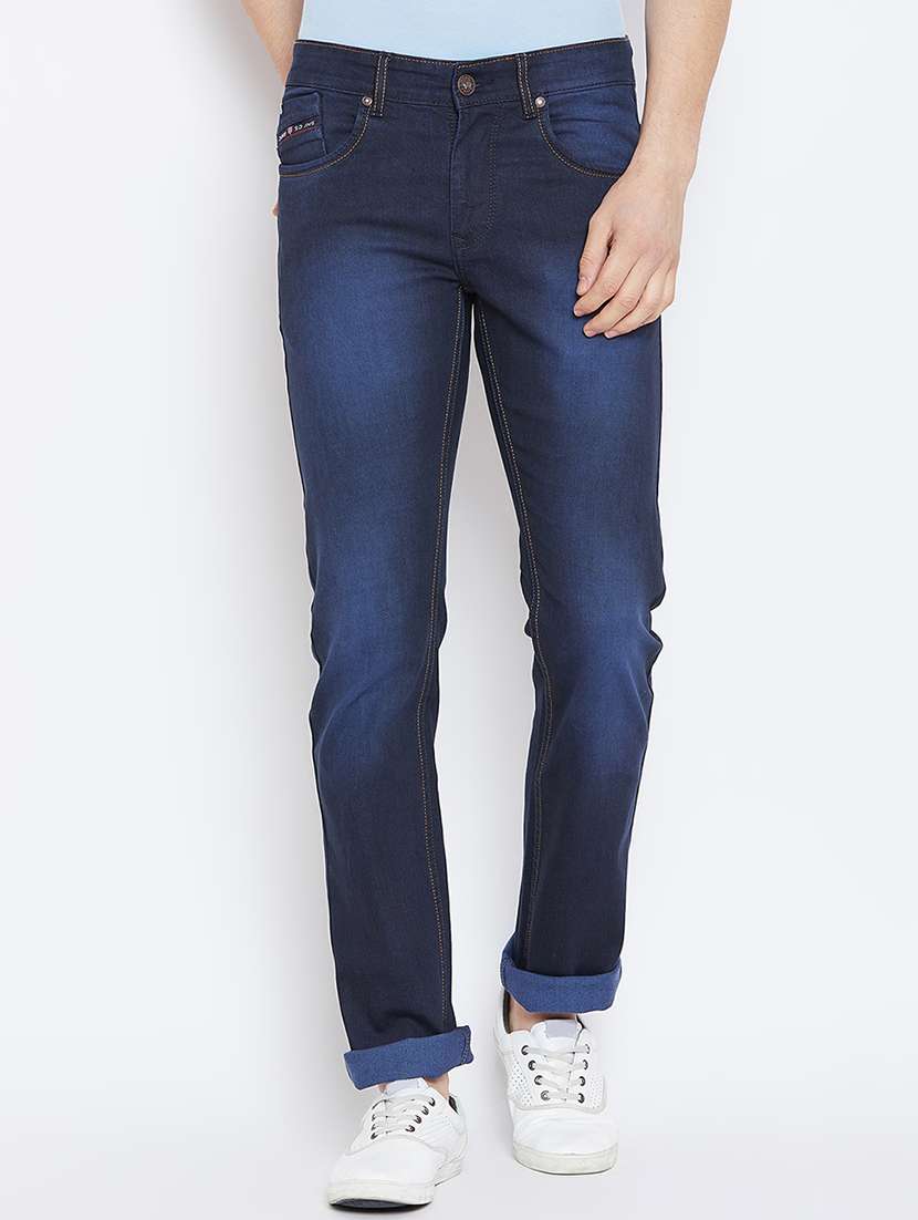 navy blue cotton blend washed jeans