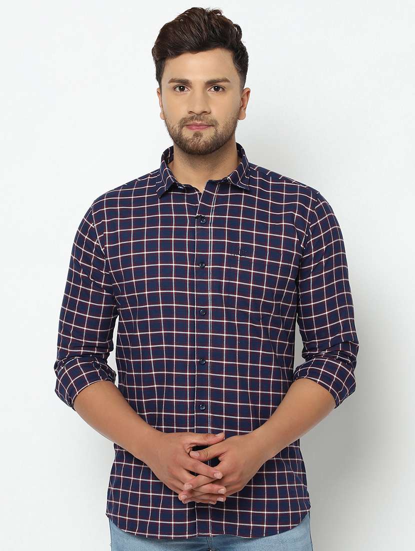- » navy blue checkered casual shirt