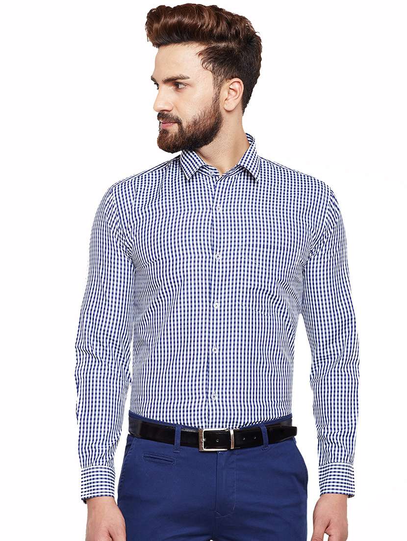 - » navy blue checkered formal shirt