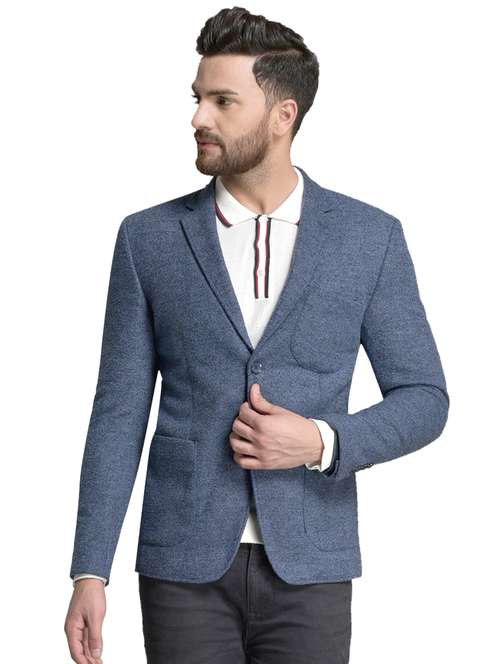 - » navy blue solid single breasted casual blazer
