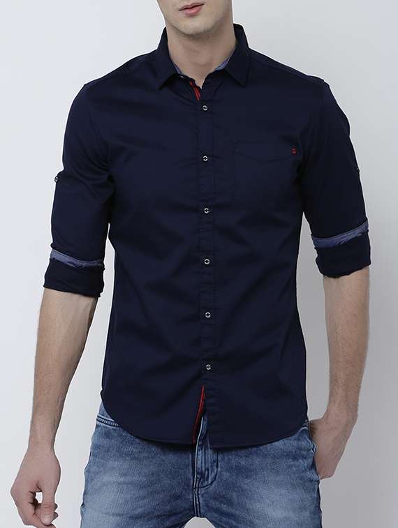 - » navy blue cotton blend casual shirt