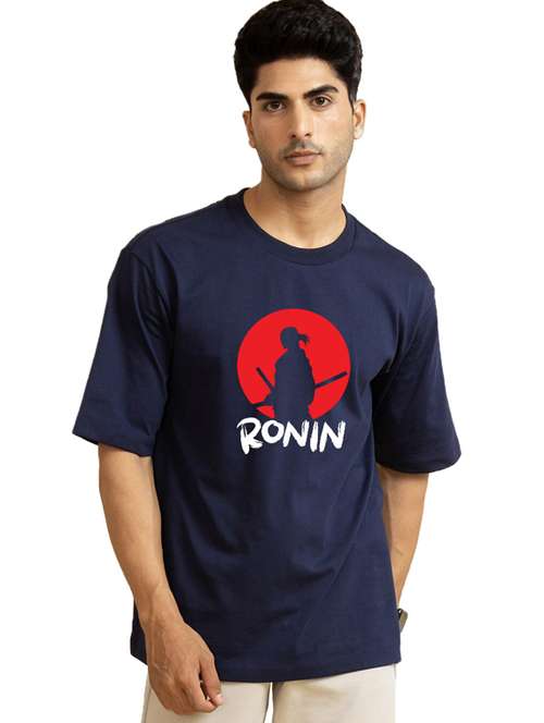 - » navy blue cotton blend front print tshirt