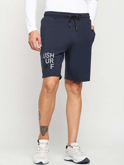 navy blue cotton blend shorts