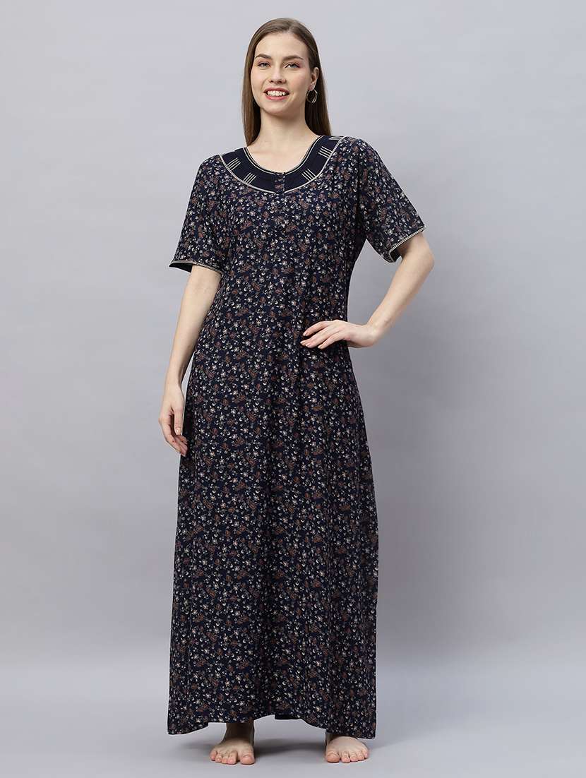 Quira Comfortable Women's Full Length Cotton Blend Half Sleeves Nighty, Soft and Elegant Sleepwear
