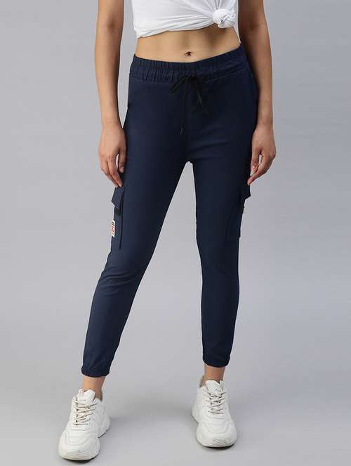 - » women solid navy blue joggers