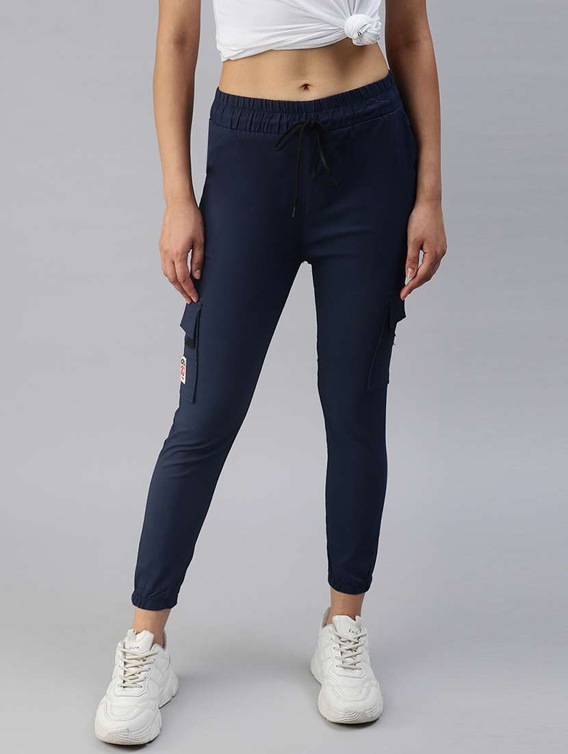 women solid navy blue joggers