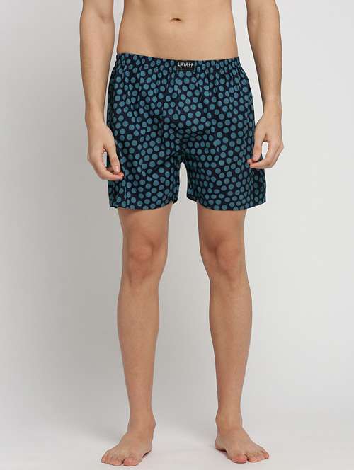 navy blue all over printed cotton blend boxer