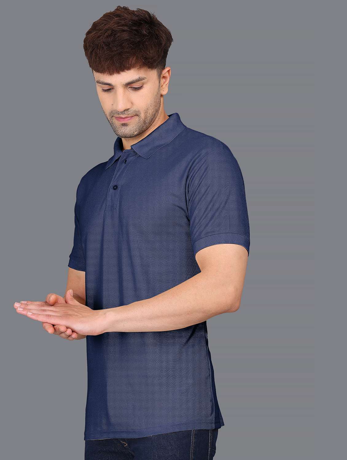 - » navy blue cotton blend plain tshirt