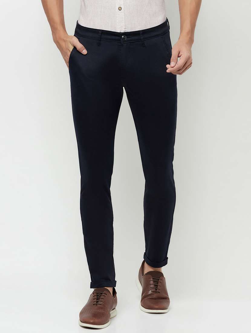 - » navy blue solid flat front casual trouser