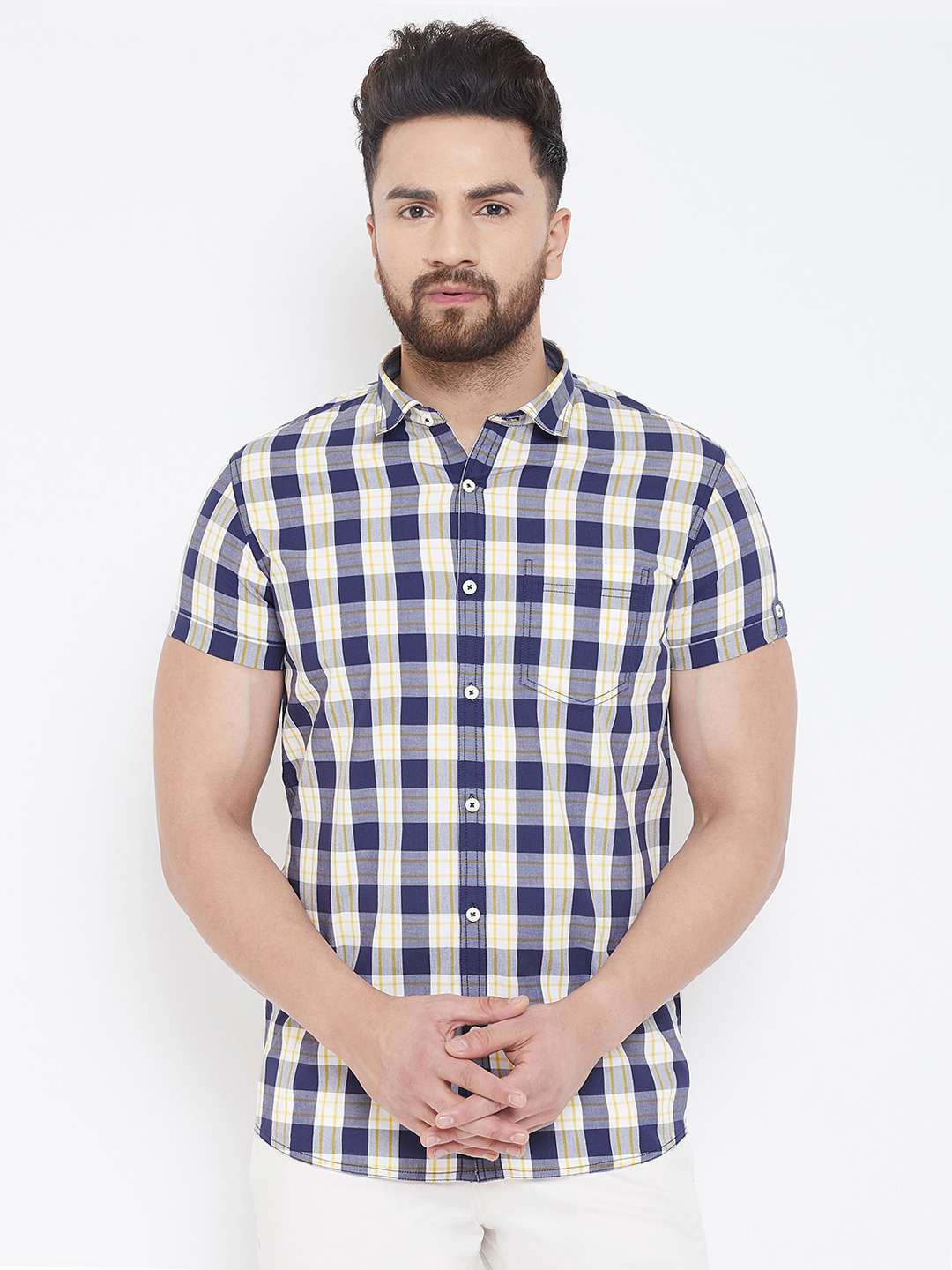 - » navy blue checkered casual shirt