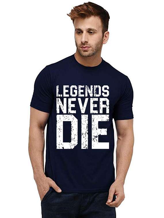 navy blue front printed casual t-shirt